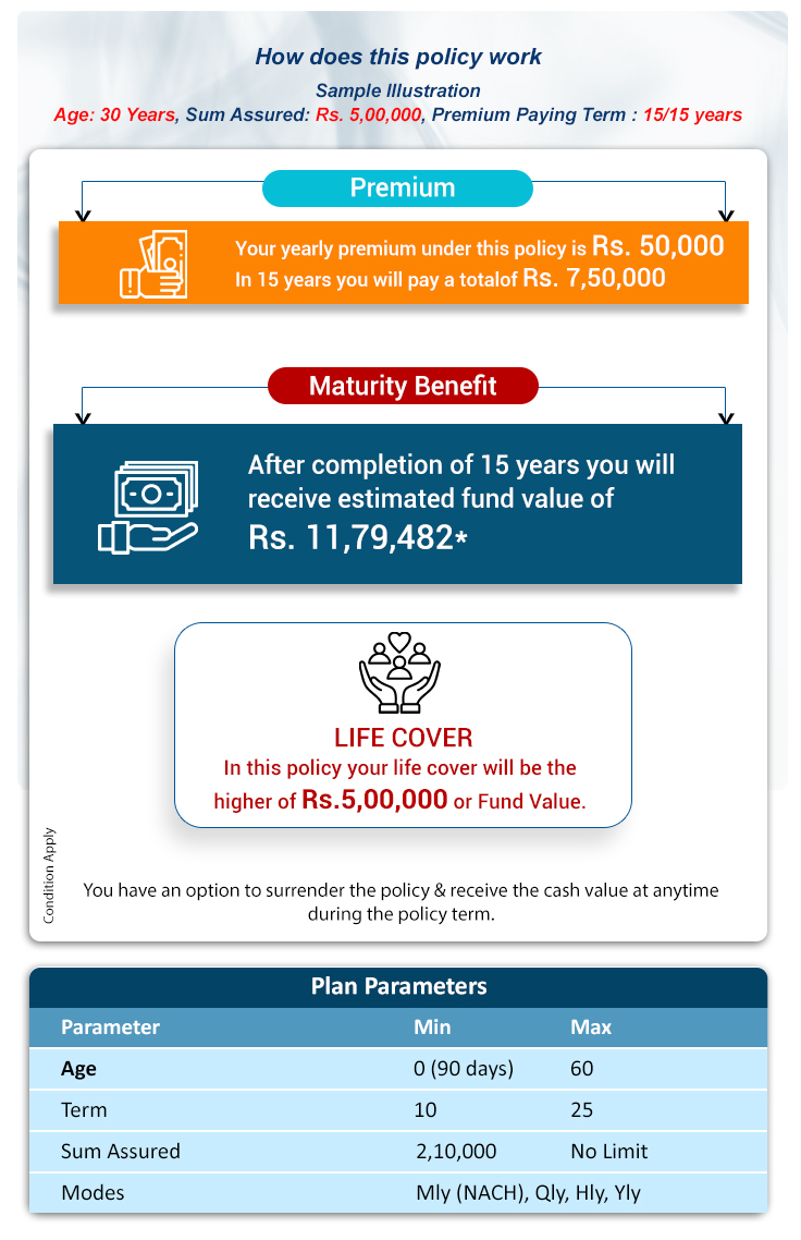 • Regular Premium Unit Linked Plan with benefits of Insurance and Investment.