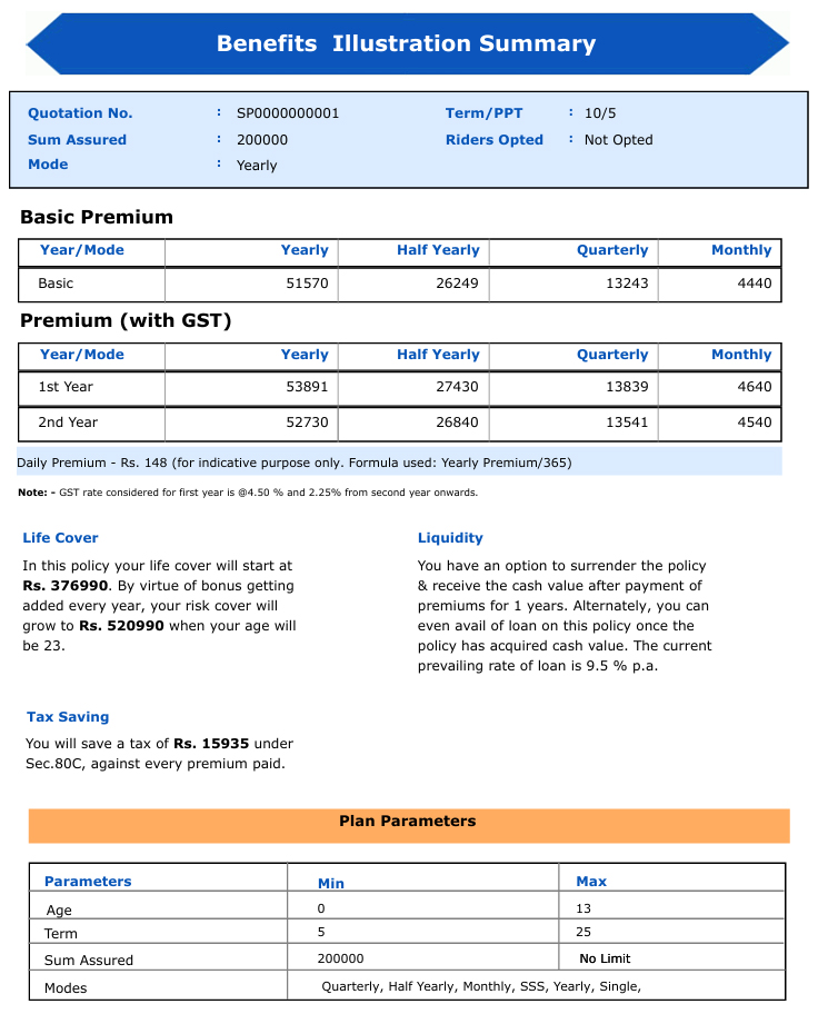 - Savings + Protection: The plan provides financial protection during the policy term and a lump-sum payout on maturity, ensuring both short-term and long-term financial security.
